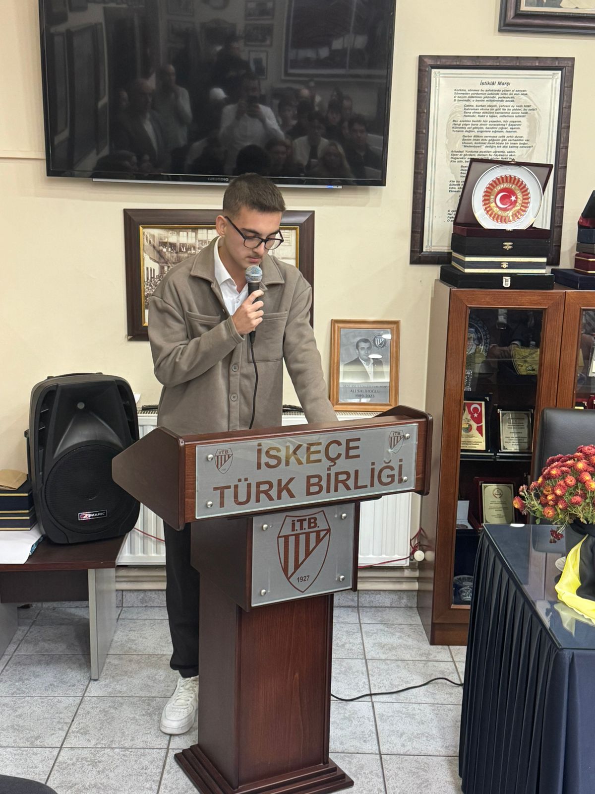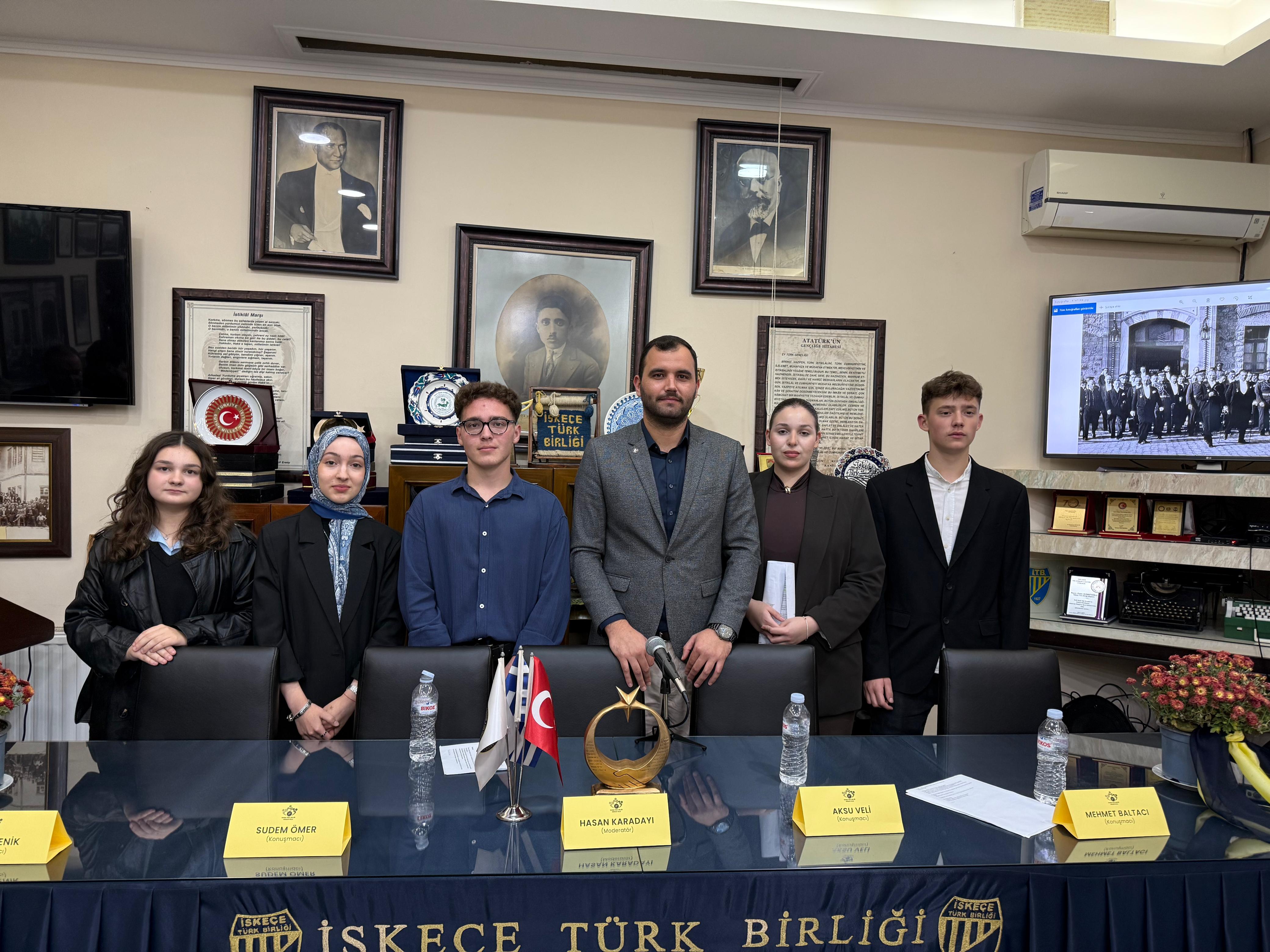 İskeçe, 13 Kasım 2025 - İskeçe Türk Birliği (İTB) Gençlik Kolu tarafından 13 Kasım 2025 Perşembe akşamı, İskeçe Türk Birliği Lokali'nde "Atatürk Söyleşisi" düzenlendi.