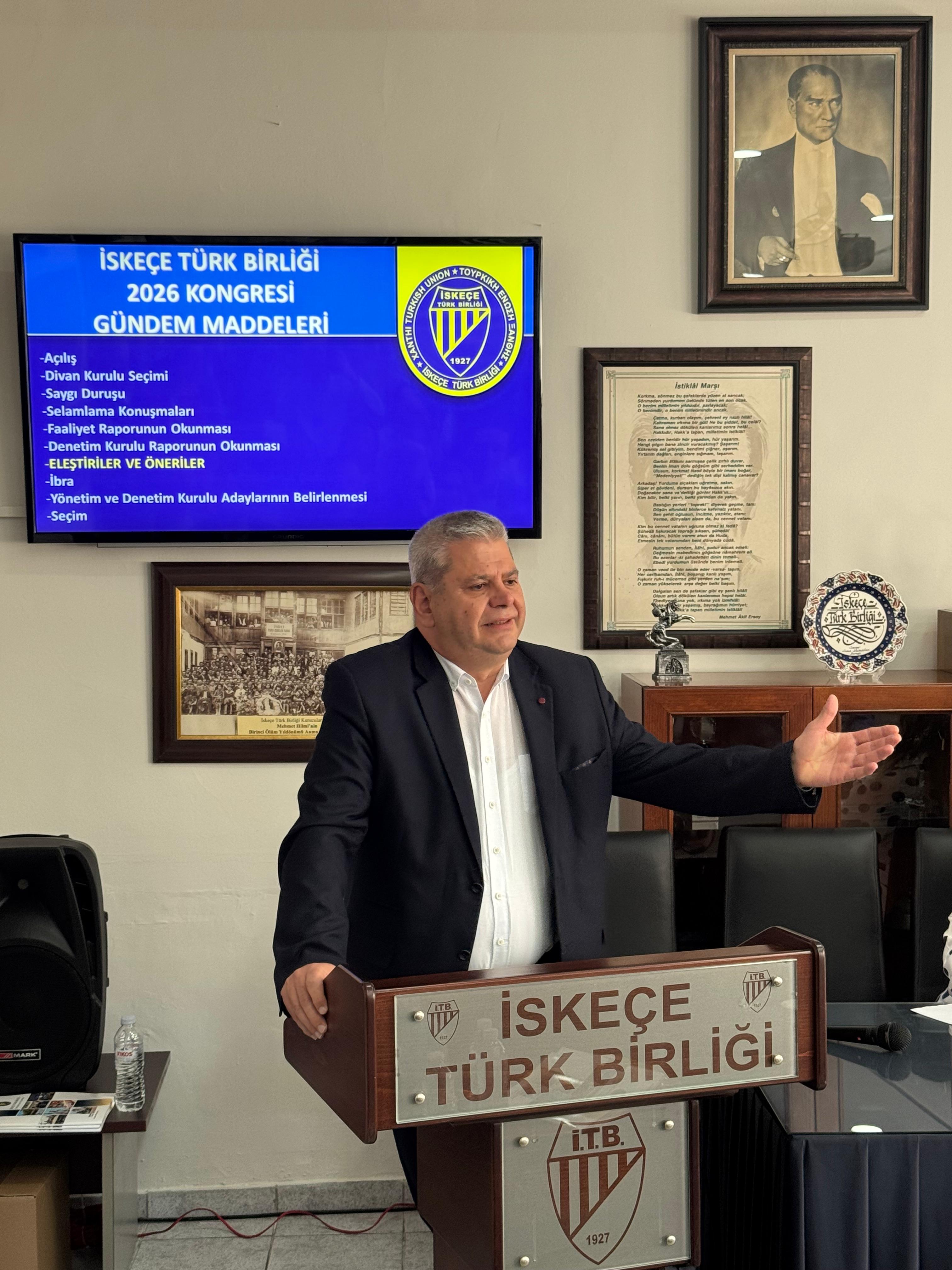 İskeçe Türk Birliği (İTB) Genel Kurulu, 26 Nisan 2026 Pazar günü İTB lokalinde yapıldı. Genel kurulda, yönetim ve denetim kurulu seçimleri gerçekleştirildi.