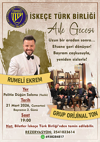 İskeçe Türk Birliği Gençlik Kolu öncülüğünde, 25 Ekim 2025 Cumartesi günü İskeçe Türk Birliği Lokali'nde "Cumhuriyet Gecesi" etkinliği gerçekleştirildi.